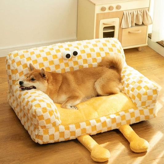 Save 25%Yellow Plaid Fluffy Dog Bed